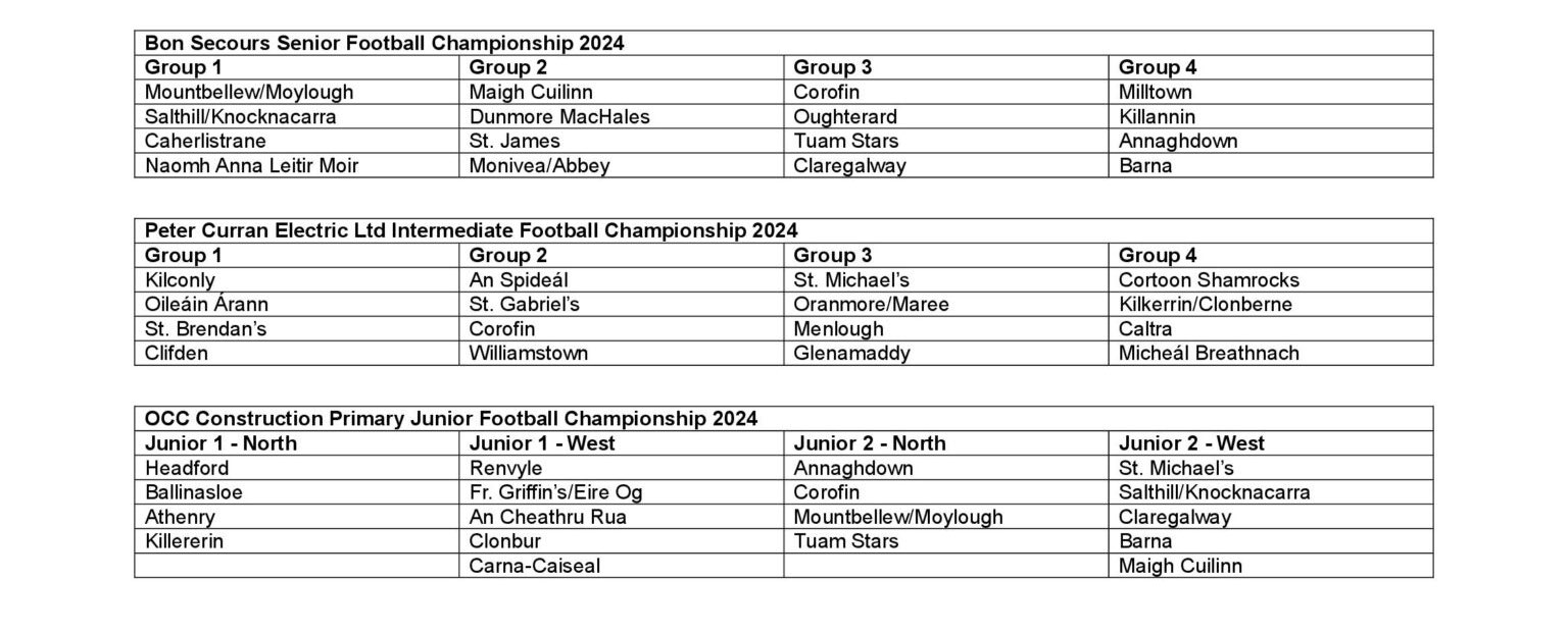 Galway Football Senior, Intermediate & Junior Championship 2024 Draw Preview